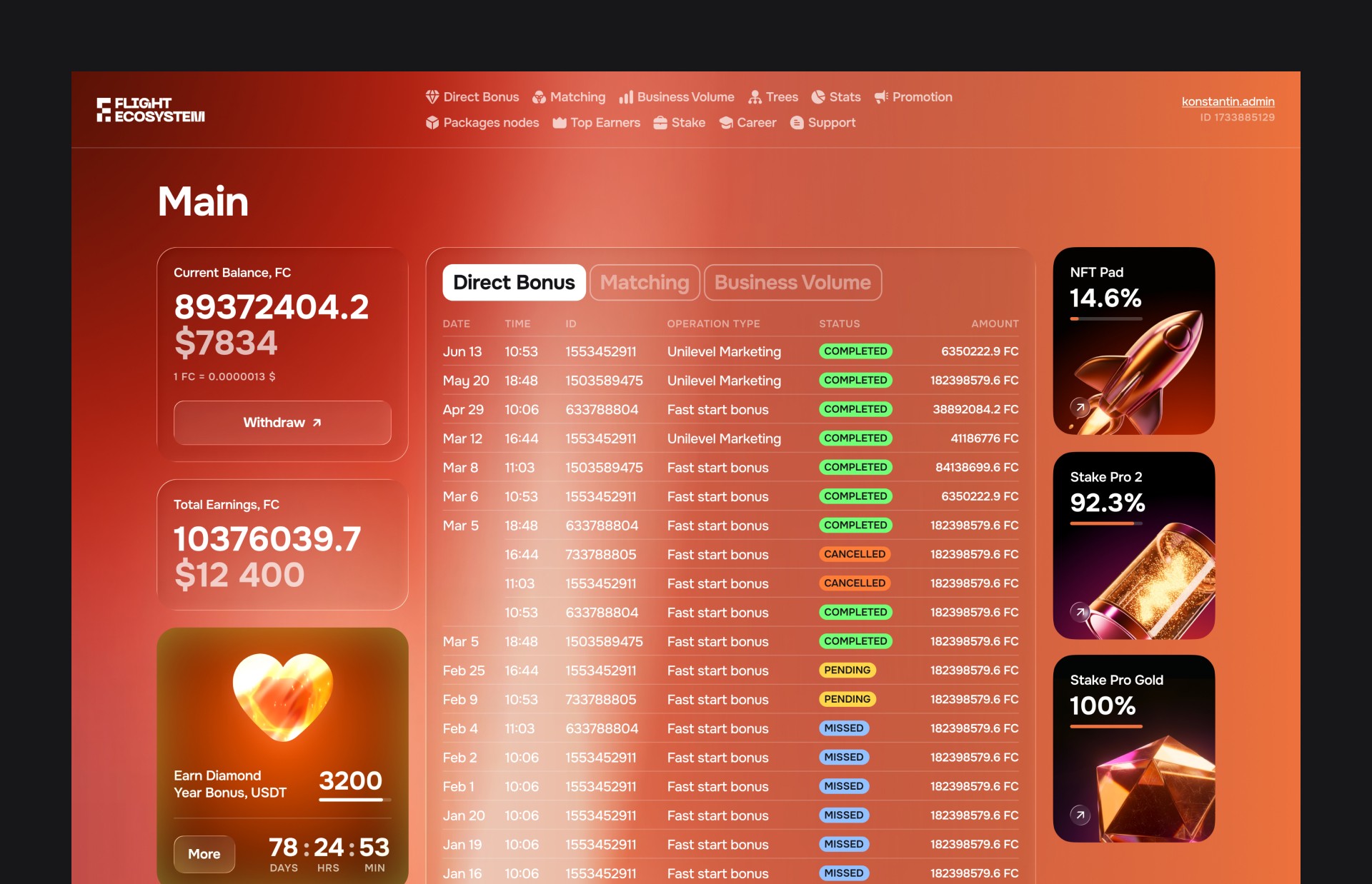 a next-generation crypto platform that combines investing, staking, and a referral system. here, users can earn tokens, receive bonuses for referrals, and track their performance in a personal dashboard. as the product grew and began attracting more attention, it underwent a complete rethink and redesign. a ux audit helped clarify the product’s goals and user needs.