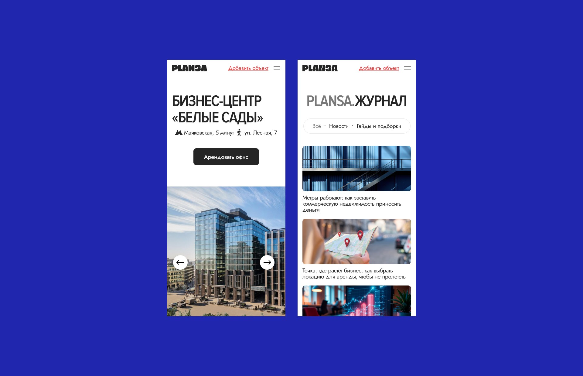 plansa is a service by arcada estate that helps businesses find and rent commercial spaces in moscow. the platform simplifies the search process by offering a clear structure, transparent listings, and an intuitive interface. its calm, straightforward tone of voice focuses on clarity and trust, helping users make decisions quickly without unnecessary complexity.